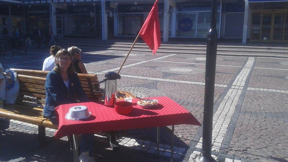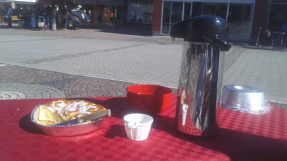 I lördags hade vi andra öppna fika för säsongen och det var liksom förra väldigt lyckat. Inga journalister letade sig till vår plats där vi satt mitt på Spötorget men väl många Västerviksbor som var ute och flanerade i det vackra vädret. Många passade på att upplysa oss om missförhållanden i kommunen eller bara ta en fika och prata om lättare spörsmål. En lokal liberal var också förbi för diskussioner om bland annat NATO-frågan.